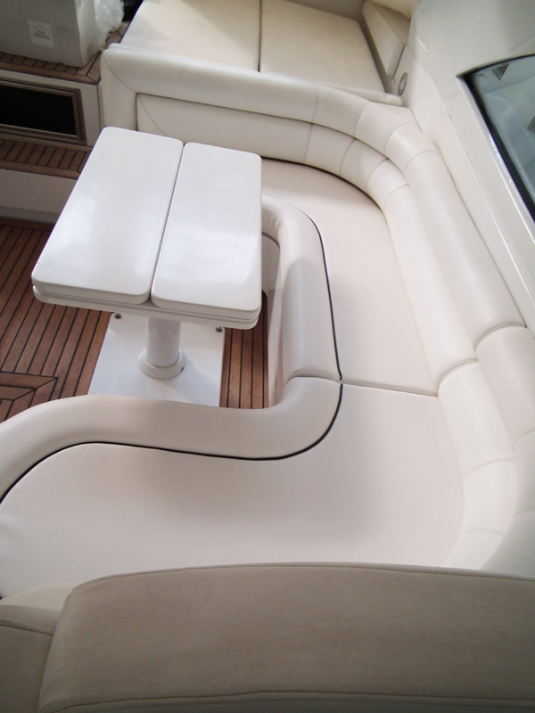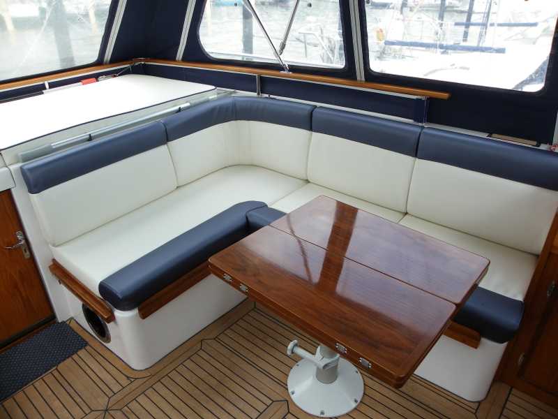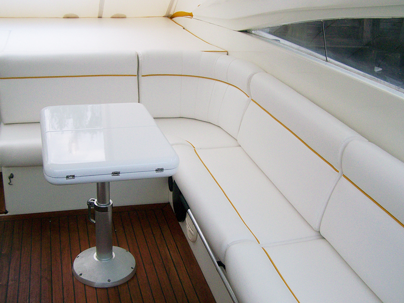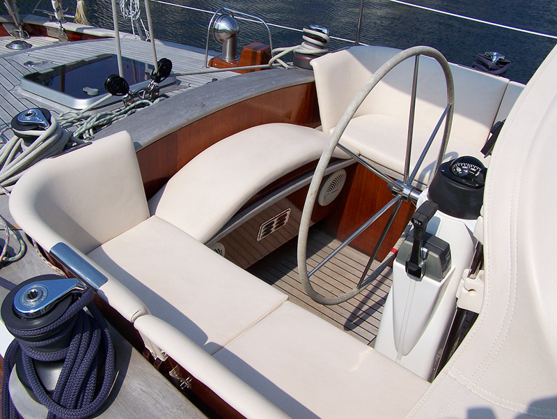 Die Ansprüche sind den der Salonpolstern sehr ähnlich. Im Cockpit will man Relaxen und sich bequem Nieder lassen und doch kann alles anders kommen. Hecktik durch Manöver oder Wetter und die Polster dienen plötzlich als Ablage für Tauwerk oder Fender. Gerade hier ist es wichtig, das der Bezugstoff nicht sofort Schaden erleidet und danach mit leichtigkeit von unliebsamen Spuren wieder gereinigt werden kann. Hier hat sich die Anwendung von Kunstleder sehr etabliert, auch haben Heute sehr hochwertige Microfaserstoffe hier Ihren Einzug gehalten.