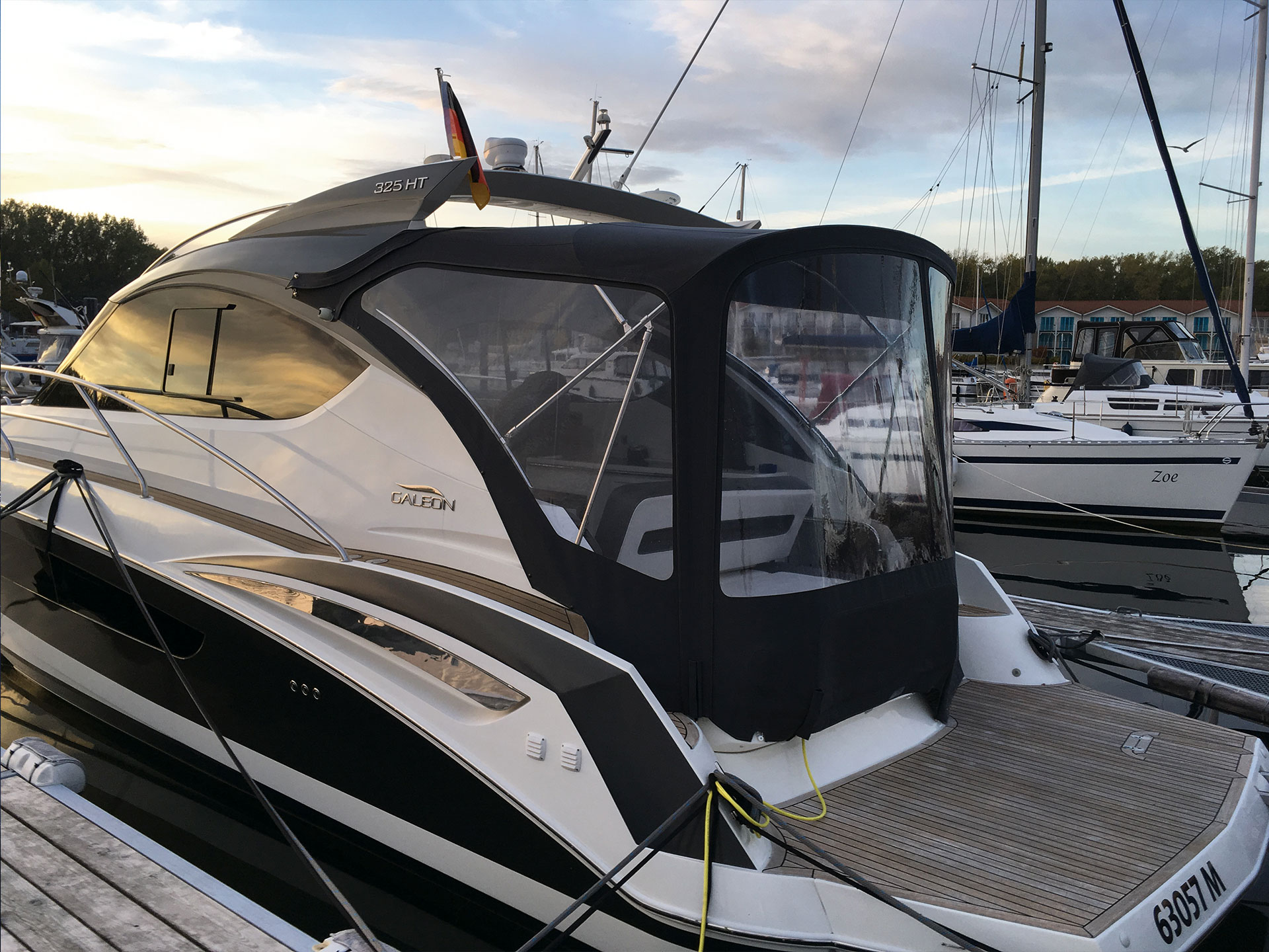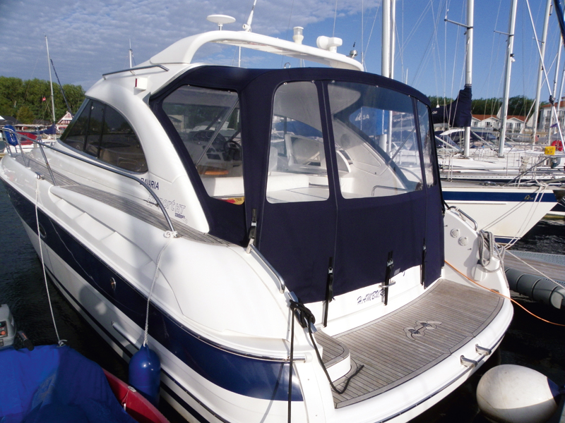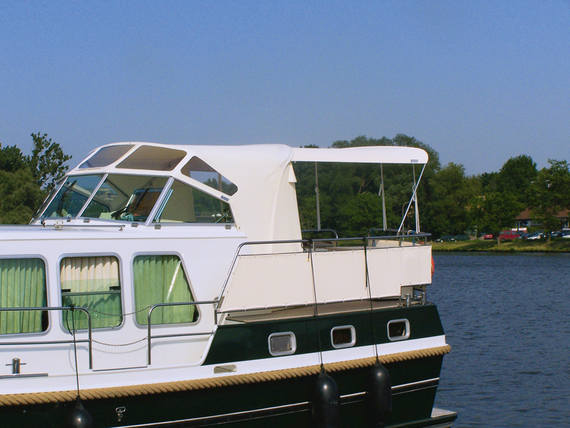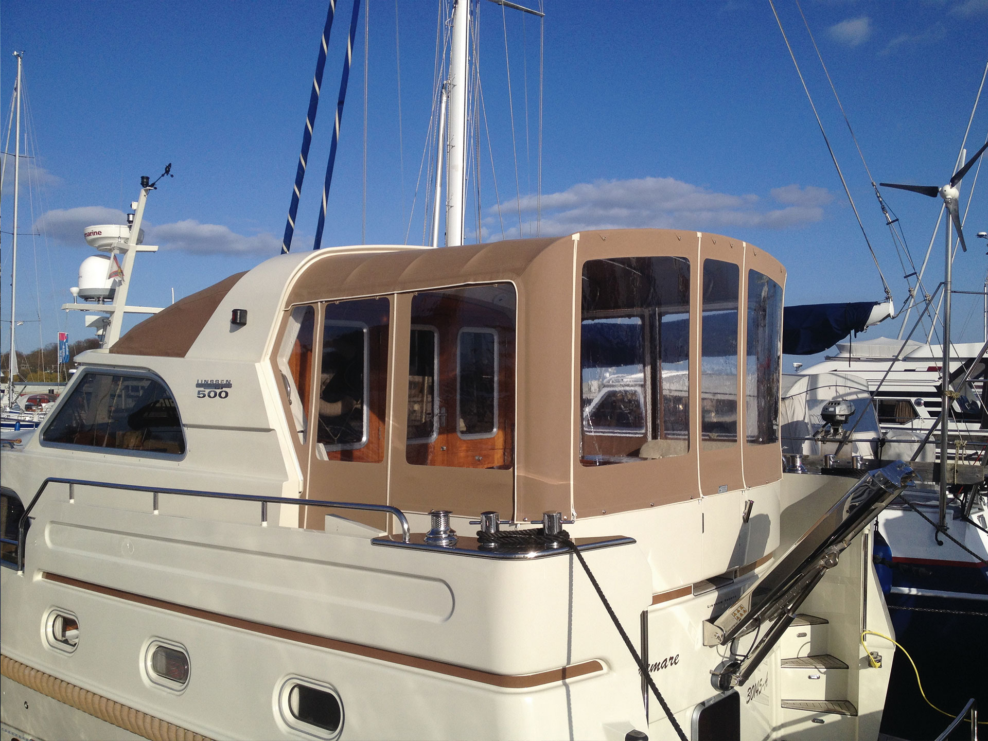 Ein Bimini für den Schutz vor Sonnenstrahlung, oder ein komplettes Vollverdeck für die regnerischen und stürmischen Tage. Großzügig gestaltete Fenster sorgen für einen hellen Innenraum, eine intelligente Flächenteilung für angenehme Handhabung.