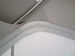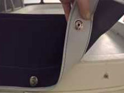 Alle Kanten werden gesondert mit Sky-Leder eingefasst. Im Bereich der Befestigungen wird zusätzlich ein schweres PVC Material eingelegt, um ein Herausreissen der Knöpfe zu verhindern.